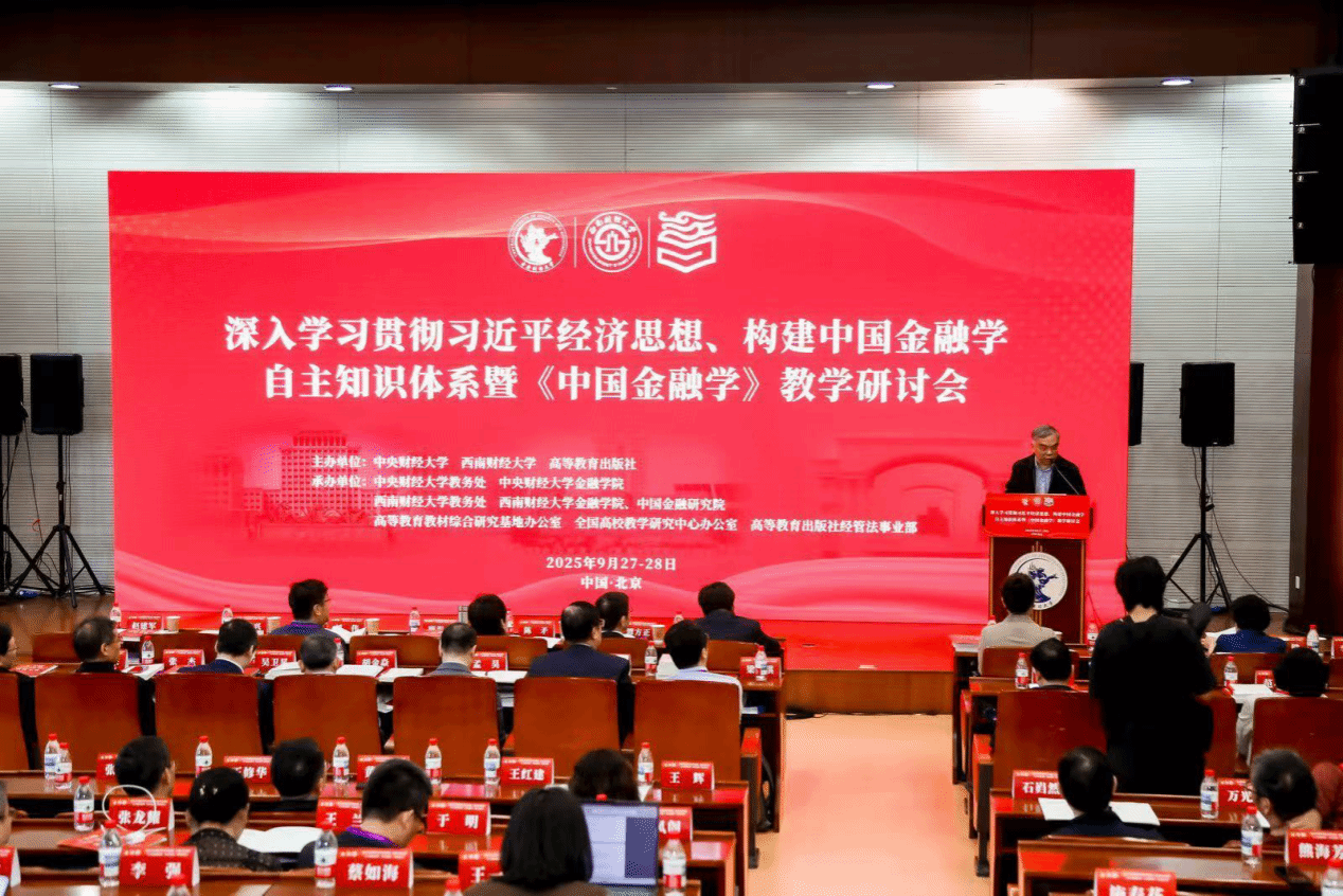 教学团队贾丽平、张婷、郑文风三位教师应邀参会,围绕教材核心价值与教学实践展开深入交流。会议期间,编写组分章节系统试讲,清晰梳理教材逻辑框架与教学重难点,与会人员就课程目标定位、章节衔接设计、教学案例选用及教学技巧等关键问题展开热烈研讨。9月27日至28日,深入学习贯彻习近平经济思想、构建中国金融学自主知识体系暨《中国金融学》教学研讨会在中央财经大学举行。我校直播平台