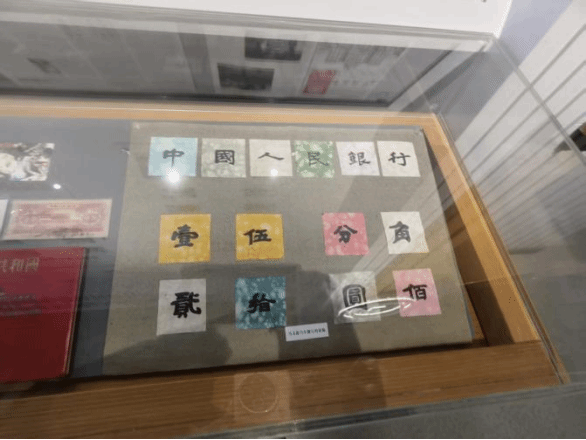 转过一个转角,核心展区的展柜让我停下了脚步——这里陈列着马文蔚先生当年题写的人民币字样原稿。“中国人民银行”六个字,分别写在浅蓝、米白、粉紫等不同颜色的宣纸上,字体端庄遒劲,既有隶书的厚重,又有魏碑的风骨。下方“壹”“伍”“分”“角”等字样,或黄或红,色彩鲜亮,笔锋间的力量感扑面而来。站在展柜前,我想象着1950年那个午后,先生应南汉宸行长之邀,在天蓝色虎皮宣纸上挥毫的场景。他或许未曾想到,这看似平常的试笔,会成为伴随几代中国人的经典印记。作为金融专业学生,我深知人民币的发行绝非简单的经济行为,而是新中国确立金融主权、稳定经济秩序的关键一步。先生以笔为刃,将传统书法的文化底蕴与国家金融的时代使命融为一体,让每一张人民币都成为行走的文化名片与信用象征。那些曾被我们熟视无睹的文字,此刻在我眼中,已然成为国家信用的视觉图腾,是金融与文化最深沉的联结。