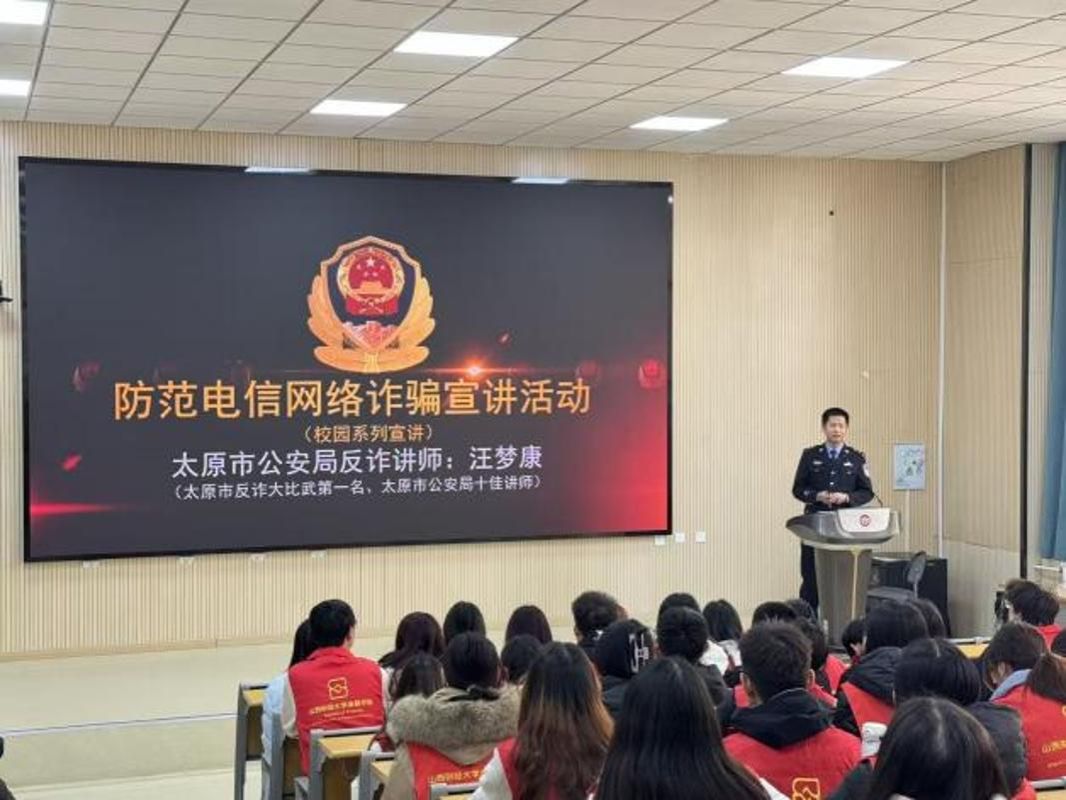 本次活动内容丰富、形式新颖,活动现场,气氛热烈。宣讲活动在我校修德202阶教进行,现场座无虚席,先是由太原市公安局反诈十佳讲师结合近期高发诈骗案例,用真实、鲜活的素材为同学们深入剖析校园电信诈骗、网络刷单诈骗、虚假征信诈骗等常见套路,通过案例解析、现场问答等互动形式,细致讲解防范要点与应对方法,切实提升学生的反诈识别能力,引导学生增强警惕性,掌握自我保护技能。随后,民生银行金牌消保讲师以“从不被骗”到“会理财”为切入点,聚焦青年消费特点与金融需求,引导同学们树立理性消费观念、正确使用金融产品、维护个人征信安全,帮助青年群体树立健康向上的消费观与理财观,做到防诈有术、理财有方。同学们在轻松热烈的氛围中进一步夯实了金融基础知识储备,提升了风险识别与应对能力。